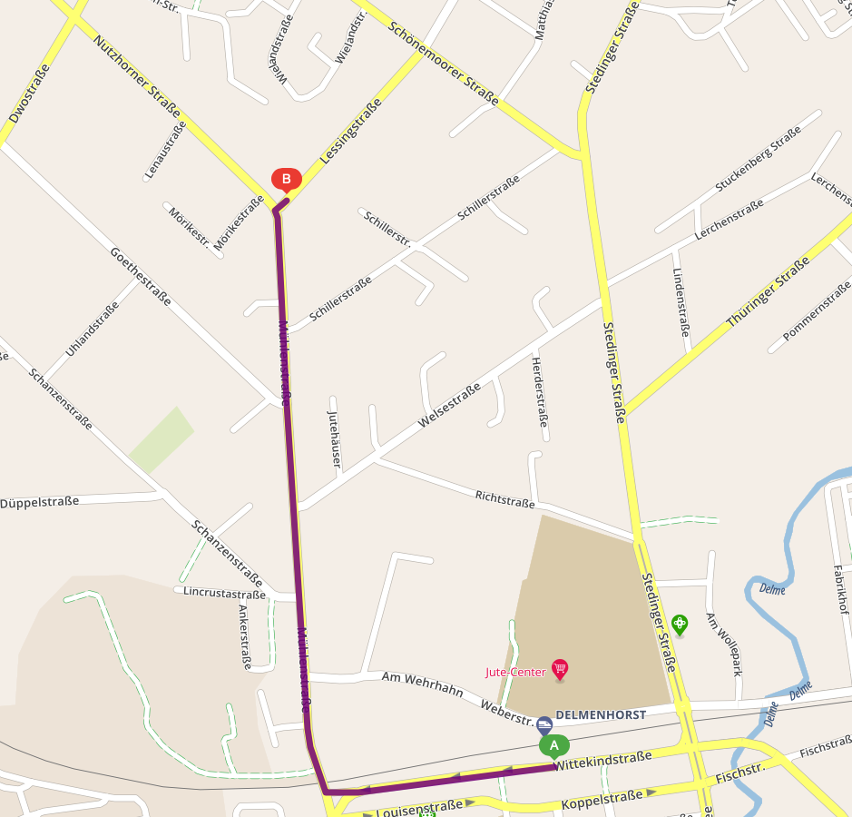 Vom Bahnhof Delmenhorst fährt die Linie 207 (Richtung Dwoberg) und hält unmittelbar vor der Malwerkstatt Delmenhorst e. V.